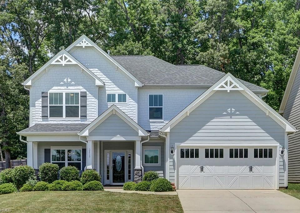 Tucked in Alderbrook, a premier SW community with pool & playground, this home offers gracious living, tasteful finishes & lovely outdoor spaces. True Craftsman style: covered front & back porch, arches, built-ins w/shiplap details & wood floors on the main level. Main-level master w/generous closet & luxe bath. Loft/homework station. Two BRs share Jack-n-Jill bath. Huge bonus for games & media (big storage closet). Patio, firepit & fenced yard. Conv to Hwy 68, I-40. PTI Airport & Triad Farmers Market.