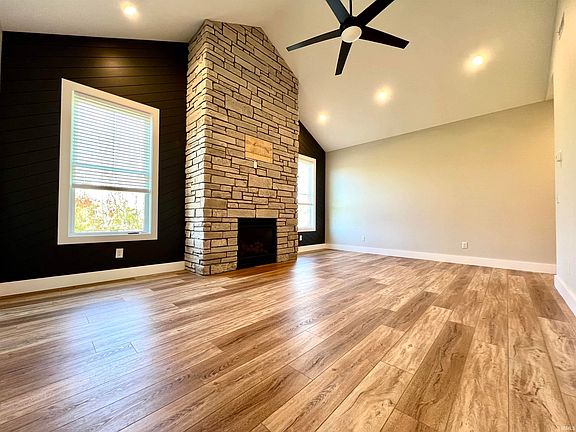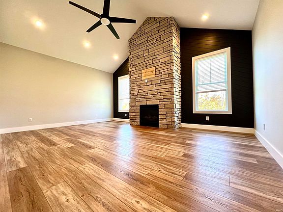 Custom built one and a half story home located in desirable Southern Fields Subdivision right off HWY 37 N/S. This residence offers over 3400 finished sq ft, oversized 2 car attached garage and a chef's dream kitchen amongst many other upgrades. Luxury vinyl plank flooring, custom stone fireplace, custom ceiling beam treatments, massive walk in pantry, amazing laundry room and so much more! Upstairs is additional bedroom option, bonus room, as well as full bathroom.