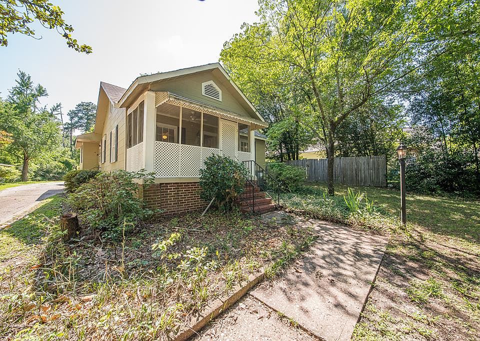 This large 1.2 acre lot in the heart of the city is a hidden gem! A great investment opportunity for a homeowner or rental property. So much potential on this property. 2 houses on lot, large extra separate garage w/greenhouse attached. Well with pump on property. Main house is 1291 sq. feet, features 2 bedrooms w/ ensuite baths & closets. Freshly refinished wood floors and new paint. Large living room w/ built-ins. Dining room w/ built-ins. Spacious kitchen w/ eat in breakfast area, appliances pass with sale. Laundry room. Screened in front porch. Fenced in back yard area. Guest house is 924 sq feet, 2 bedrooms, 1 bath. "Tenant occupied" for $550 monthly rent. Tenant prefers to stay. Viewing of guesthouse only during buyers due diligence period. Priced to sell AS-IS! Close to shopping and dining, easy access to Ft. Moore.
