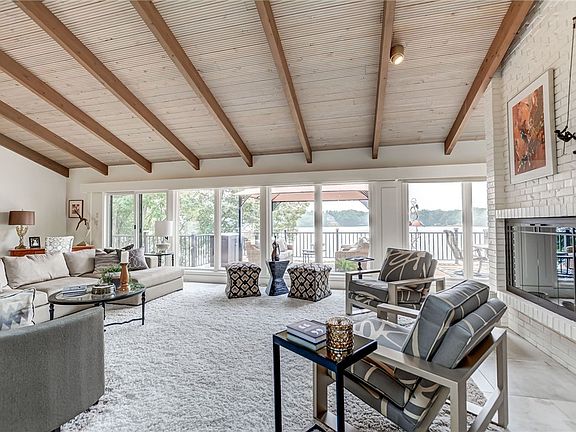 Luxury lake living with all the upgrades and amenities your family desires. Tucked back on a private drive and perfectly situated on Basin#1 for gorgeous water front views. Sellers have masterfully designed and transitioned this beautiful ranch with trendy upgrades, smart technology and low maintenance exterior. Main level boasts skylights, heated tiled floors, vaulted ceilings and floor to ceiling windows for the ultimate panoramic lake views. Everything you need on one level with bonus walk out lower level complete with a studio, family room, screened patio, rec space, bonus flex space and the 4th bedroom guest quarters with private office/nursery, attached ensuite and walkout to covered patio. Stunning throughout & meticulously maintained. Covered dock and boat house with Granite wet bar and lakeside patio for entertaining. Hobbyists dream workshop building for your solution to storage, and so much more!