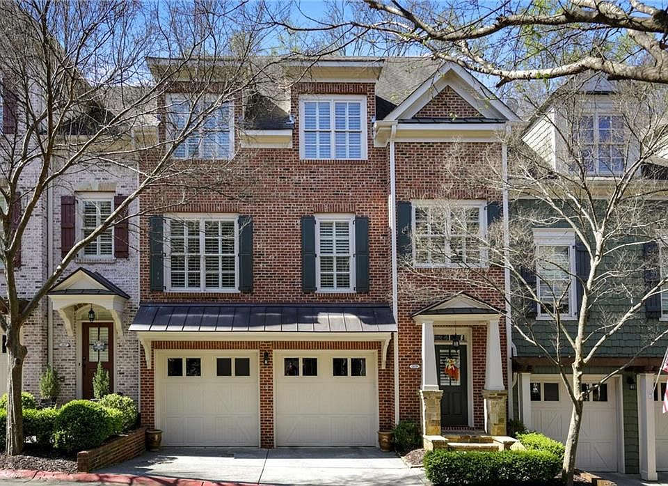 Gorgeous brick townhome, perfectly situated in the Overlook at Marietta Country Club. The abundance of natural light in both the front and back of this townhome, in addition to the serene wooded setting, make it a rare find. Main level has a beautiful, highly functional floorplan that includes an open concept kitchen and great room, a separate dining room with a butler's pantry, and an office/den/bedroom space next to a full bath. Eat in kitchen has large granite island with breakfast bar, double ovens, & Bosch appliances. Great room with gas fireplace and built ins is the perfect place to relax and enjoy the view. A private deck with a motorized awning extends the living space outdoors. The terrace level has a lovely guest suite with a bedroom, a full bath, & a large living room with a gas fireplace that opens to a patio with a "dry below" ceiling. Living room also includes a wet bar with a refrigerator, sink, & microwave. Upper level houses the master suite, a second large bedroom with an ensuite bath, and a large laundry room with a sink. The master suite has a large sitting area and 2 walk in closets. The master bath has a garden tub, a separate shower, a double vanity, and a 3rd walk in closet. This home has a ton of room for storage and is elevator ready. It has too many upgrades to list, plantation shutter throughout, and 10 ft ceilings. The neighborhood's easy access to golf, swimming, and tennis make it an exceptional place to live!