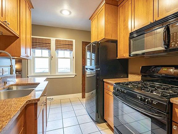 Charming 3 Bedroom Bungalow near St Ambrose. Hardwood Floors, Beautiful Woodwork, and Cozy Fireplace. The kitchen and bath have been updated and appliances are included. Inviting patio and nice yard lead to a 2 car garage with additional parking area. Vinyl siding and a new garage roof.