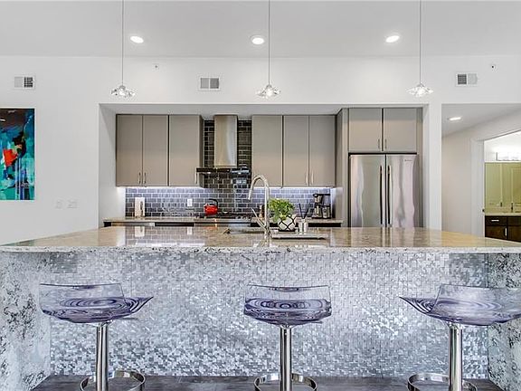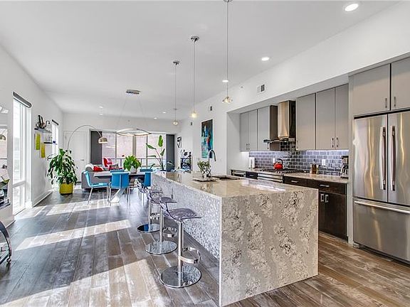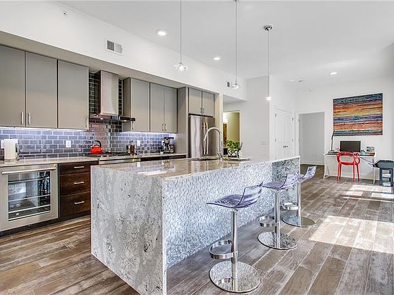 Luxurious modern 2 bedroom condo located in the heart of the historical Strip District. As you enter the 1,857 sq. ft open concept corner unit you will be greeted with natural light coming from the floor to ceiling windows, 10 ft ceilings and Shaw engineered hardwood floors that flow throughout every room. Instantly you will be impressed with the upscale kitchen including stainless steel Jenn Air appliances, wine cooler and stunning oversized double waterfall Cambria Quartz island. Next to the kitchen is a flex space leading to the covered balcony and guest bedroom. The dining room w/ a modern Elan chandelier flows into the spacious living room looking out onto the outdoor balcony. Off the living room is the master bedroom with linen closet, walk in custom built closet and master bathroom. Secure garage PARKING included. Save BIG on property taxes w/ the notable TAX ABATEMENT in effect until 2026! Pet friendly building with fitness center, storage room & newly remodeled courtyard!