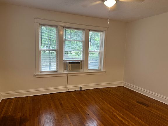 Charming 5 room studio/loft apartment, top floor, corner unit with lots of windows - very cheerful, rehabbed, heat & hot water included with rent, new thermal windows, hardwood floors, window a/c, small walk out porch, coin-op laundry in basement, on street parking, note that assigned off street parking available with paid parking fee, private storage, new storm doors, overlooks Ryan Hummert Park, NO dogs, cats OK. Smoke free building. This apartment is located within walking distance to a coffee shop, Schnucks grocery store, Schlafly Bottleworks, lots of cool restaurants. It is close to Brentwood, Clayton, Dogtown, Richmond Heights, Forest Park, U-City loop, Central West End, Washington University, Webster University, Metrolink, and the Galleria. Note: Pictures may be from another unit in building