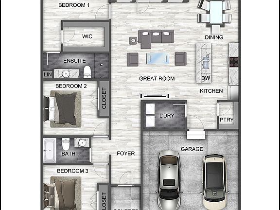 The Greensboro is a beautiful three-bedroom, two-bathroom home with an open and airy floor plan. With lots of natural light, trey, vaulted ceilings, and granite throughout. The walk-in pantry, closet, and utility room make this home spacious and functional.