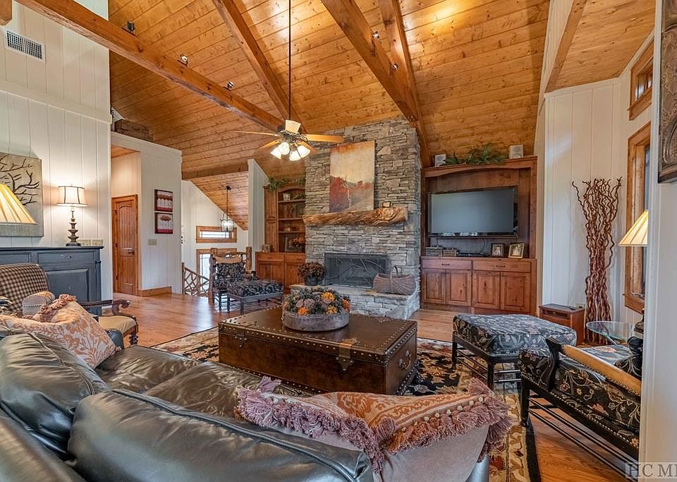 A great mountain retreat for your family with room to spare. Overlooking the 14th hole at the award-winning Trillium Links golf course, this three-level home will engulf you with the mountain lifestyle you seek. All three levels feature central living areas, two have fireplaces. Two levels have large wrap-around porches for lounging (one with a fireplace + ceiling fans) or entertaining friends, gourmet kitchen (Viking Pro+Bosch+Sub-Zero) for feeding them, and a second kitchenette on level 2. Oak floors and pine walls & ceiling in common areas, 4 well-appointed baths, and a location that is enviable as it is centrally positioned among the unmatched Trillium Links & Lake Club amenities. Infinitely adaptable, the three living areas are currently configured to entertain and sleep a dozen comfortably. CLUB MEMBERSHIP IS NOT REQUIRED, but for those interested, it is available for an additional fee.