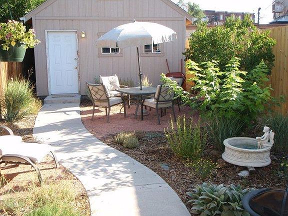 2419 W.Dunkeld Pl. 2BR / 2Ba 1144 ft2 cats are OK - purrr dogs are OK - wooof duplex w/d in unit detached garage Beautiful 1144 sq ft 2 BR/2 BA unfurnished duplex (meaning half a house, one shared wall) with detached garage in fantastic location in Potter Highland, aka LoHi, just west of Lodo. Built in 1909 with a master suite addition built in 2006 (which means one bedroom is considerably larger than the original one, which is 7x10). Xeriscaped front and back yard (i.e., no grass to mow). 1.5 car garage with remote door opener. Pet door (small door, pet deposit required $300/dog, $200/cat)). W/D, D/W, stove/oven/range-top microwave, refrigerator, garbage disposal, ceiling fans in every room, clawfoot tub (in 1 of 2 full baths), original fireplace mantel and tile, working wood-burning fireplace, high ceilings, high relief moldings, skylights in kitchen and master bath, 6 closets for storage plus unfinished basement and large storage loft in garage. Living room is 12'x15' Two blocks to hop on I-25 at Speer Boulevard. Near trendy restaurants (Linger, Lola, Zuni Street Brewery, Duo, Vita, Forest Room 5, Pasquinis, Little Man). In front of new CorePower Yoga headquarter studio building. Half block to Ashland Rec Center. Walk to REI, Confluence Park, Lodo. Historic Highland center at 32nd and Lowell minutes away. Walk to Pepsi Center, 1.5 miles to either Coors Field or Sports Authority stadium. One month security. You pay all utilities except sewer and trash. Looking for a one year lease or go month-to-month for $100/mth premium (exception is no permitted termination on Dec 1 or Jan 1). Email to schedule a showing or text or call Barb for more info One year lease or month to month for $100/mth more. You pay gas and electric. Owner pays trash and sewer.
