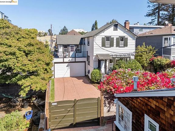 Beautiful private 2-story townhouse with modern amenities and abundant storage. Filled with natural light! Beautiful redone hardwood floors throughout. 2 bedrooms plus huge new office space(original 2 car garage converted to office), 2 bath, gourmet kitchen, laundry room with full size W/D, wood-burning fire place. Both bedrooms have 2 large closets + separate linen closet. Private driveway with space for 1 car inside the gate, 3 cars outside the gate (tandem). Balcony with space for table/ chairs. Kitchen details: Updated appliances incl. Thermador range and small wine fridge. Large and luscious garden with mature fruit trees (meyer lemon, plum, tangerine), herb garden and grass. Can leave playhouse for kids or remove upon request. Gated and private, incl. ADT alarm system and Swann system monitoring cameras. Quiet, nice neighbors. All new windows so very quiet. Dog/ Cat friendly. Amazing location 1/2 block from Whole Foods Market, 5 min walk to College Ave. and Elmwood/ Rockridge areas. Walking distance to Bart. Renter responsible for utilities incl. water, power, internet, trash, specialty gardening. Owner responsible for bi-annual substantive garden service incl. tree work and irrigation needs. 1 year term only. Can discuss lease extension.
