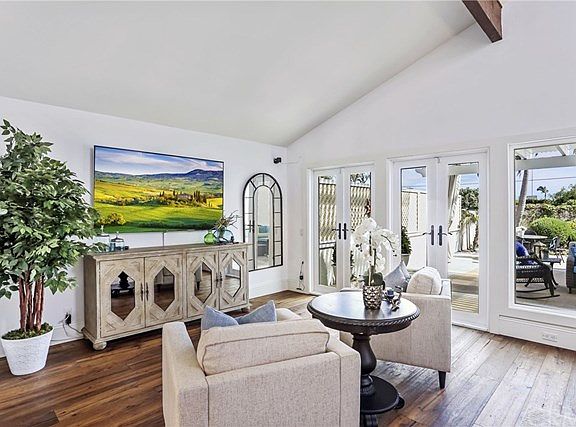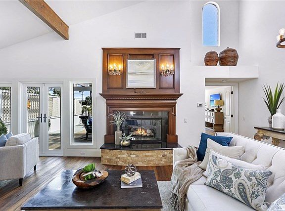 Beach Close Pool Size lot in Niguel Shores the best of Indoor-Outdoor Living. This three bed, two bath home features outdoor ambience from every room and indoor timeless elegance. Enter to an inviting paver courtyard with mature landscaping. Step into this light and inviting home with rich hardwood floors, updated neural paint, vaulted ceilings, a fireplace with a stone tile and granite hearth, custom mantle and elegant arches defining the living spaces. Sophistication and warmth continue into the remodeled kitchen with granite counters, recessed lighting and chef appliances. Off the living room the entertainer's patio features a shady awning that opens to a pool sized yard. With patio access the master suite features recessed lighting, an elegant bath with a dual sink Carrara marble vanity, marble tile shower and upgraded lighting and fixtures. The front bedroom has French doors to the entry courtyard and the third bedroom also has patio access. Last is a guest bath including a designer vanity with a granite counter, stone tile backsplash and subway tile shower with a custom beach themed inlay. Located on a quiet cul-de-sac with a 2 car attached garage, a 2 car driveway and added A/C enjoy Niguel Shores amenities including an oceanfront bluff-top park with direct beach access, pool and spa complex, tennis courts and more. Situated near the Ritz Carlton, the Monarch Beach Resort and Links, Dana Point Harbor and Downtown Dana Point this unique coastal lifestyle could be yours.