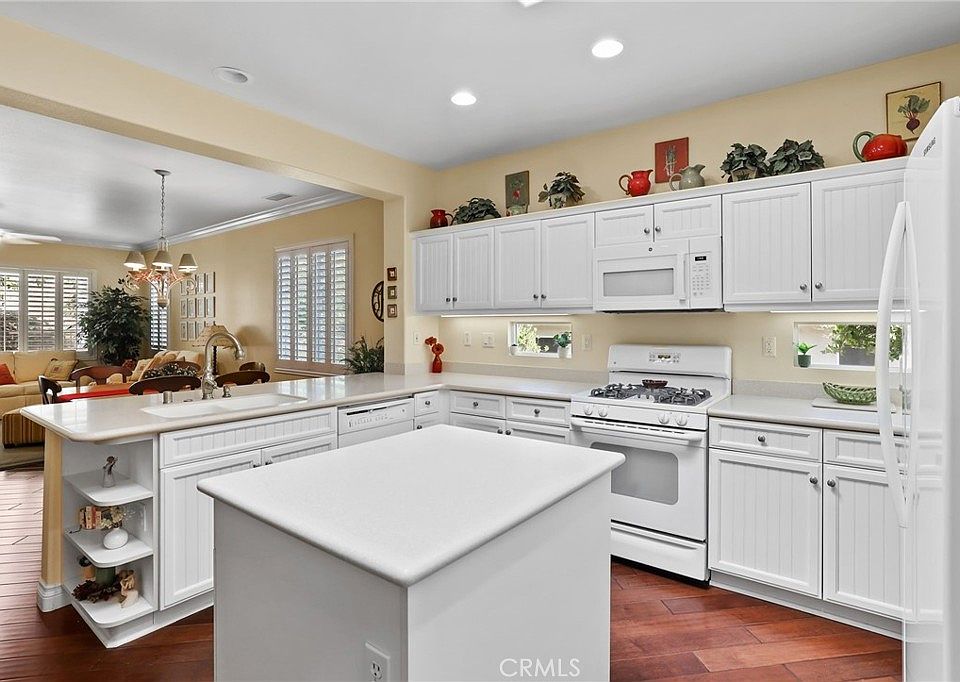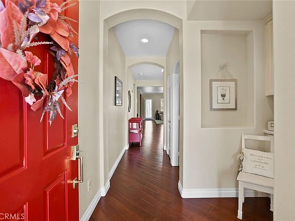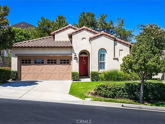 This beautifully maintained 2-bedroom + den, 2-bath home offers a thoughtfully designed single-level layout in the sought-after gated community of Trilogy at Glen Ivy. Rich hardwood floors extend through the main living areas, setting a warm and elegant tone. At the center of the home, the bright kitchen features white cabinetry, recessed lighting, and a generous center island. The kitchen flows effortlessly into the great room—an ideal space for both entertaining and everyday living with custom media built-ins and plantation shutters that invite abundant natural light in, while a single elegant door opens to a private backyard with a manicured lawn and a covered patio. The two rooms are versatile and inviting—one with a Murphy bed and shutters for flexible use, and the guest bedroom located at the front of the home with its own en-suite bath, mirrored closet doors, and plush carpet. The primary suite offers a private sitting nook—perfect as a reading space or office—along with a walk-in closet fitted with built-in cabinetry and an en-suite bathroom with dual sinks and a walk-in shower. Life at Trilogy offers far more than a home—it’s an active, resort-style community. Residents enjoy indoor and outdoor pools, tennis, pickleball, bocce ball, a state-of-the-art fitness center with indoor lap pool and jogging track, plus endless opportunities for social connection, from live entertainment at the Grand Pacific Crest Lodge to art studios, billiards, and more. Nestled against dramatic mountain and canyon views, you’re also just minutes from Glen Ivy Hot Springs and Tom’s Farm for dining, shopping, and weekend leisure.