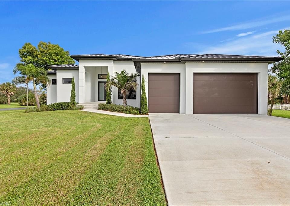 Sleek. Luxurious. Simply Stunning. Be the first ever to live in this shiny new custom built home! Experience the perfect blend of modern design and effortless Florida living in this brand-new, custom-built 3-bedroom, 2-bath home with a den and an oversized three-car garage. From its clean architectural lines to the elegant metal roof, every detail was designed to impress. Step inside and be greeted by soaring ceilings, sunlit spaces, and gorgeous tile flooring throughout. The open-concept floor plan flows seamlessly from the designer kitchen to the spacious great room, creating the ultimate space for entertaining or relaxing in style. The primary suite offers a luxurious retreat with a spa-inspired bath and 2 generous walk-in closets. A private den provides flexibility for a home office, hobby room, fitness room or guest space. Outdoors, a sprawling covered lanai invites you to unwind and enjoy the tropical breeze, while the manicured lawn and modern façade on this large corner lot, make this home a true standout in the neighborhood. With its thoughtful split floor plan, timeless finishes, and top-tier craftsmanship, this home redefines contemporary living on Florida’s Gulf Coast. So Many upgrades, schedule your showing today!