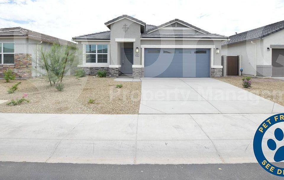 1,867 Sq Ft. Stunning 4 bedroom, 2.5 bath home in Buckeye's Desert Moon Estates. This home offers tons of modern fixtures and desirable features throughout. Gorgeous eat-in kitchen includes subway tile backsplash, stainless steel sink, quartz countertops, upgraded cabinetry and expansive breakfast bar. Great room living/dining. Find neutral paint throughout + tile in all the right places. Flexible den space would make great home office or bonus room. Primary suite includes full bath and walk-in closet. Nicely sized secondary bedrooms, each with nice carpeting. Blinds throughout. Enjoy a low up keep backyard with covered patio. 2 car garage. Located in a desirable community with children's playgrounds and biking/walking trails throughout. Application: $65 Application Fee Per Applicant 18 years or older (Nonrefundable). Please allow 24 to 72 business hours to process the Application once all required documents are submitted by all applicants 18 years or older. Lease Length: 12-month Minimum (Longer Lease Term may be negotiable) Initial MOVE-IN Costs: Upon application approval, a nonrefundable Holding Retainer will be required to secure the property and will be applied towards the move-in costs. The Holding Retainer amount is determined by the type of Security Deposit option you choose. Applicants can choose between a traditional Security Deposit which may be 1.25 times the monthly rent but not greater than 1.5 times the monthly rent (75% refundable) or a Security Deposit Alternative program (only available on long-term leases of 12 months or more). A $250 one-time lease preparation fee as well as the first month's rent is due prior to move-in. Pet Policy: Dogs and Cats Allowed with the following exceptions: Up to 2 pets Max will be considered for this home If the Applicant has a Pet, $150 Non-Refundable Pet Fee per pet. Recurring Monthly Costs: There is a 3.3% Administration Fee. All on Q Property Management Residents are enrolled in the Resident Benefits Package for $39 or $49 with pets, which includes liability insurance, credit building to help boost the resident's credit score with timely rent payments, move-in concierge service making utility connection and home service setup a breeze during your move-in, Renter to Buyer program and much more. All information including advertised rent and other charges are deemed reliable but not guaranteed and is subject to change. Pet Friendly, Garage Attached, Concierge, Fenced Yard, Playground, Dishwasher, Microwave, Patio, Family Room, Laundry Room, Office, Pantry, Carpet, Tile & Stove.