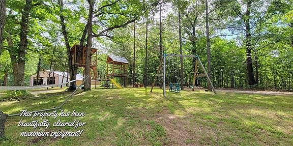 Gorgeous 50 acre paradise with 3 bdrm, 2 bath home, 30x50 outbuilding just off paved road, minutes from town and the lake! Get ready to check some boxes! Circle drive leads down to a hidden oasis with a massive outbuilding for boat, truck and so much more! Concrete floor, electric & water at this drive through outbuilding. Spacious living room open to large eat-in kitchen. Spacious master suite boasts of large closet & full bath. Two other nice size bedrooms with full bath between. Large 2 layer deck has been built off the back for those big family get-togethers and fish fries! Home is an oversized single wide. Property has been wonderfully cleared to give beautiful views from every direction. The back 38 acres have also been partially cleared for entertaining with a spring fed pond, electric, fire pit & 3 permanent deer stands. Bring all your buddies for a camp out during deer season. Deer, turkey and wildlife galore on this stunning property. Hurry! Your dream property awaits you! Additional 58 acres available to purchase.