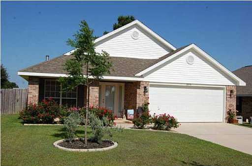 3 bedroom 2 bath brick home, 12' tall ceilings at peak in living, great room and kitchen, Large walk-in in master bedroom, 5' shower in master bath. fenced back yard with 16 X 12 deck with Pergola over looking farm land, 2 storage units on one side of house and garden on other side. covered 18 X 7 front porch. walk-in closets in all bedrooms, upgraded appliances, Heat Pump, ceiling fans in every room, 2" faux wood blinds on energy efficient windows. Low power bills. 10 Mins to I-10 20 mins to beach. MUST See Immaculate like new need no work. 03/13/13