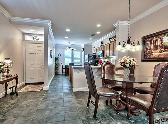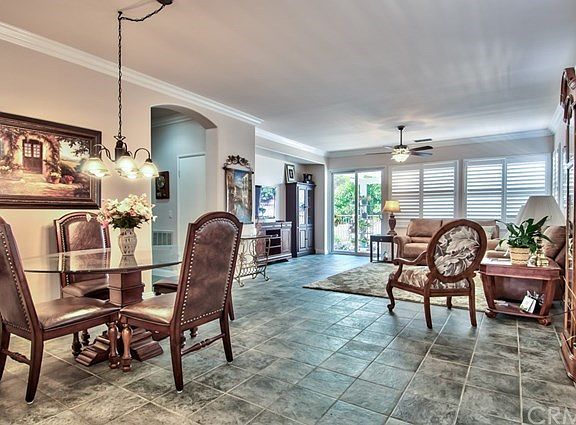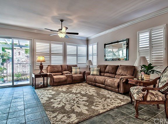 Come See This Charming Pummelo Model Home in the Wonderful Over 55+ Adult Gated Community of Trilogy at Glen Ivy. This 2 Bedroom, 2 Bathroom Home Boasts Crown Molding, Upgraded Baseboards, Custom Paint, Tile Flooring, Plantation Shutters and lots of Natural Light. The Open Floor Plan Features the Living Room, Dining Area, Kitchen and Breakfast Nook. The Open Kitchen has a Stainless Steel Range/Oven with 4 burner Cook Top, Microwave, Dishwasher, Sink and Refrigerator. It also has a Kitchen Island with Storage. The Master Bedroom has a Ceiling Fan and a Sliding Door with Plantation Shutters to the Outside Patio. The Master Bathroom has Storage, Dual Sinks with a Large Mirror and a Glass Shower Enclosure. The Laundry Room has Lots of Storage and a Utility Sink. The Guest Bedroom has a Ceiling Fan and Mirrored Closet Doors and Sits off the Hallway. The Hall Bathroom has a a Beautiful Mirror over the Sink Console with Storage and a Tile Bath/Shower. The Two Car Garage has room for Storage as well. The Back Patio has an Alumawood cover with Tile Flooring along with Wrought Iron Fencing on Both Sides and Along the Back. The Beautiful Flowers and Planted Trees give a Peaceful Feel to the Back Patio Area. The HOA includes: Indoor/Outdoor Pools, Spa, Walking/Running Track, Tennis Courts, BBQ Area, Health Club, Many Social Clubs and Events. This is a Great Place to Live!