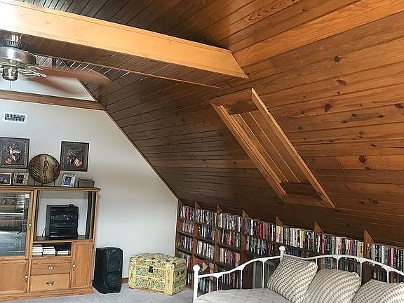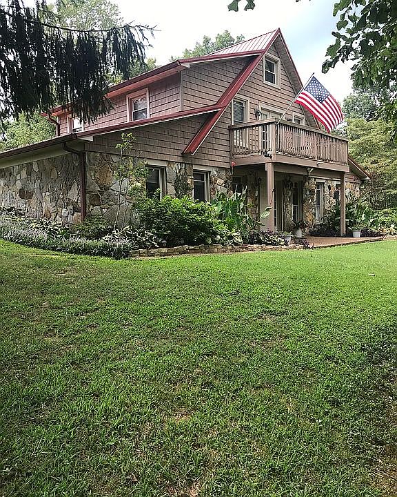 A-frame 2 story with 12.41 acres fenced on 3 sides open and wooded areas 2 car unattached insulated air conditioned garage with work space 4 bay metal building over 400 feet road frontage