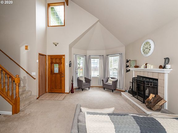 - RoomLivingRoomFeatures: Beamed Ceilings, Wall to Wall Carpet, Vaulted Ceiling(s)