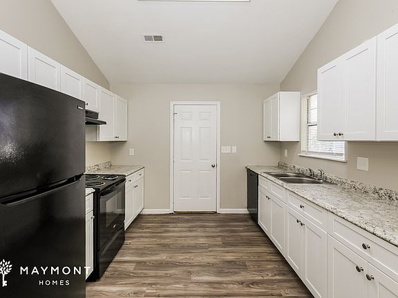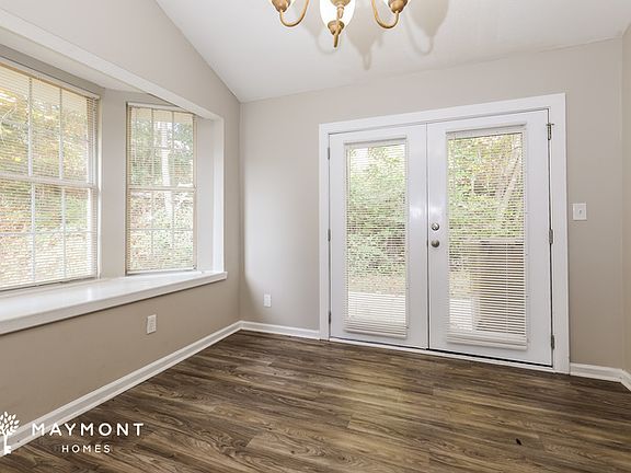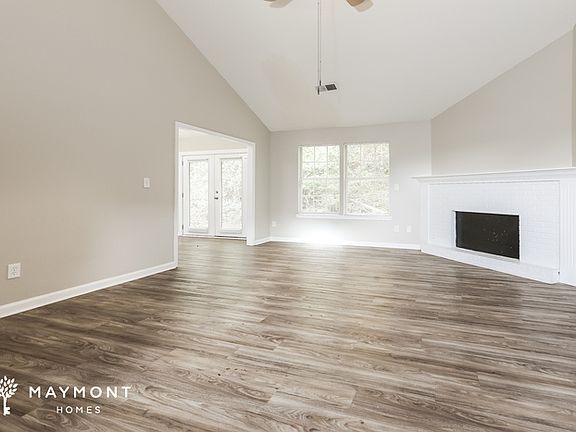 Welcome to this charming 3-bedroom, 2-bath home in Riverdale, GA! This property boasts a two-car garage and LVP flooring that runs throughout the home, offering both style and durability. Enjoy the ease of one-level living, complemented by thoughtfully designed landscaping that enhances the curb appeal. Step inside to an airy living space with tall ceilings, neutral paint, and a ceiling fan, creating a grand and inviting atmosphere. The dining area features elegant bay windows and a door that leads to the backyard, perfect for seamless indoor-outdoor living. The modern kitchen is equipped with sleek white cabinets and matching black appliances, offering both functionality and contemporary style. The primary bedroom is a true retreat, featuring a tray ceiling and an en suite bathroom with a tub/shower combo. The additional hallway bathroom also includes a tub/shower combo, ensuring comfort and convenience for all. Outside, you'll find a welcoming patio, ideal for grilling or relaxing after a long day. Situated just 18 miles south of Downtown Atlanta in the quaint suburb of Riverdale, this home offers the perfect balance of suburban tranquility and city accessibility. Don't miss the chance to make this delightful home yours! *Maymont Homes provides residents with convenient solutions, including simplified utility billing and flexible rent payment options. Contact us for more details. This information is deemed reliable, but not guaranteed. All measurements are approximate. Actual product and specifications may vary in dimension or detail. Images are for representational purposes only. Some programs and services may not be available in all market areas. Price and availability are subject to change without notice. Contact a company leasing representative for complete details. Equal Housing Opportunity. This property allows self guided viewing without an appointment. Contact for details.