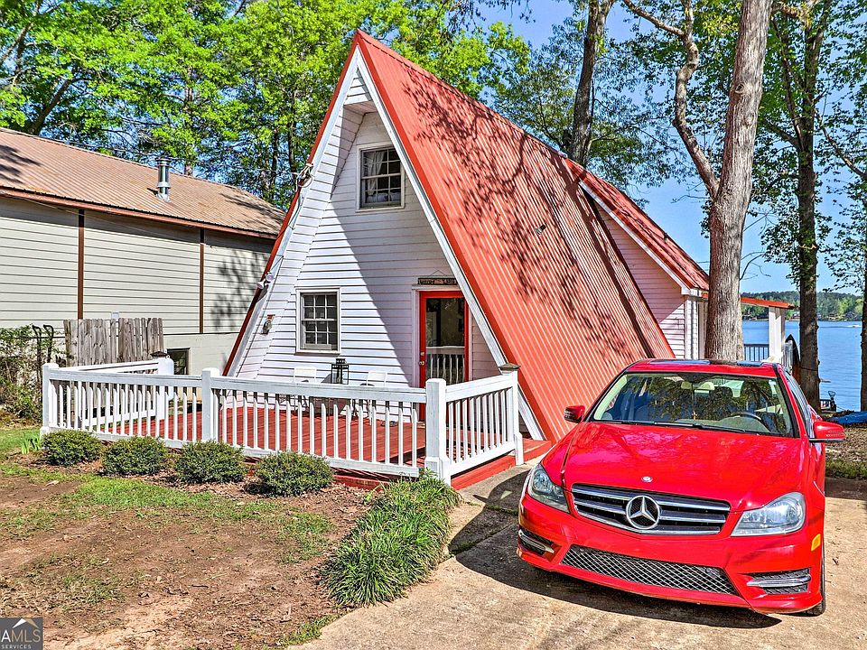 !!!!!!!Motivated Seller said bring all Offers!!!!!!!!!! Lake Jackson 3bed and 2bath with wide open views!!! Perfect Second home, Short-term rental, or LIVE EVERYDAY LAKE FRONT!!!!! Please take a moment to visit this classic A-Frame LAKE HOUSE in deep water up to 17 feet at the end of the dock. The property is Deeded not a Ga Power lease. Remodeled master bath! All updated LPV floors throughout, Stained stairs. NEW HVAC, NEW HOT WATER HEATER. Situated on a deeded deep-water lot with gorgeous views! Main level features a Large great room, kitchen, laundry room WITH TWO DRYERS. Master suite on main that opens to year-round lake views and a relaxing screen porch overlooking the lake. Upstairs you will find two full bedrooms and a bonus room! This is the perfect home for entertaining family and friends! Brand new HVAC system recently installed. Currently earning investment income as an Air BNB. Great weekend, vacation home or live here full time! Exterior features include minimal maintenance vinyl siding, metal roof, and wrap around porch. Awesome lot w/ floating dock! Great neighbors and quiet streets. Boat ramp available to neighborhood residents for small one-time fee. The owner is an agent. Showing appointments will have to be scheduled around BNB guests. For availability of appointments. No seller disclosure - Owner does not reside in home. Submit all offers via PDF, along with proof of funds and/or pre-approval letter.