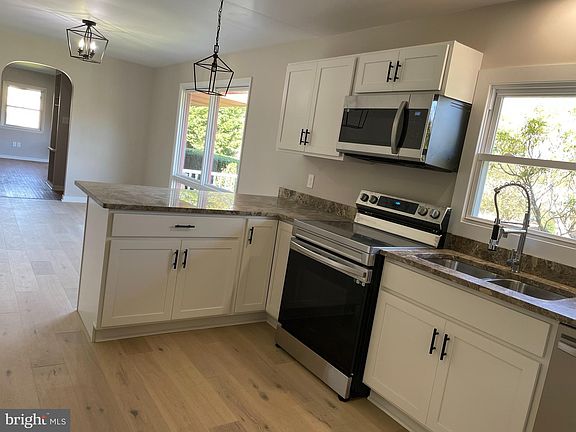 Great home for entertaining!!!! Open kitchen concept with granite peninsula, new cabinets, stainless steel appliances and refinished hardwood floors throughout. Large open basement with big wrap around bar, pellet stove, full bath and plenty of extra storage. Freshed paint throughout, all new light fixtures, tiled shower with oversized custom vanity top. Breezeway between oversized garage and house, and lots of extra parking to rear of the property. Nice covered front porch. Must see and priced to sell quickly!