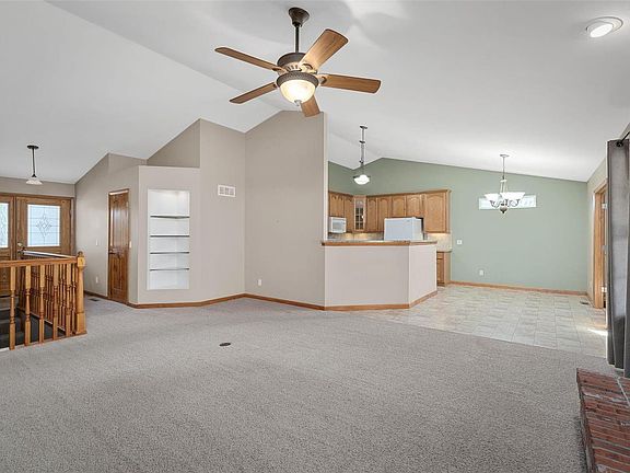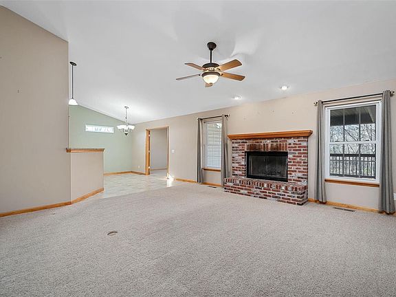 Welcome to this charming 3-bed, 2-bath ranch home, nestled on a spacious lot with a pole barn and tranquil pond. This inviting home offers a functional and open floor plan, perfect for both family living and entertaining. The well-appointed kitchen features a refrigerator, dishwasher, and electric range/oven, making meal prep a breeze. The main floor includes a spacious main bedrm with a full bath, complete with a separate shower and relaxing jet tub. Two additional bedrms and full bath provide plenty of room for family and guests. A convenient main floor laundry and walk-in pantry add extra functionality. Relax in the cozy family rm, or enjoy the warmth of the wood-burning fireplace in the living rm. Step outside to the covered deck, which overlooks a beautiful patio and pond, ideal for outdoor dining or simply enjoying the view.