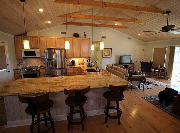 - Interior Features: Breakfast Bar, Open Floor Plan, Island, Master on Main Level, Workshop, Ceramic Tile Bath, Cathedral/Vaulted Ceiling, In-law Quarters, Kitchen/FR Combo