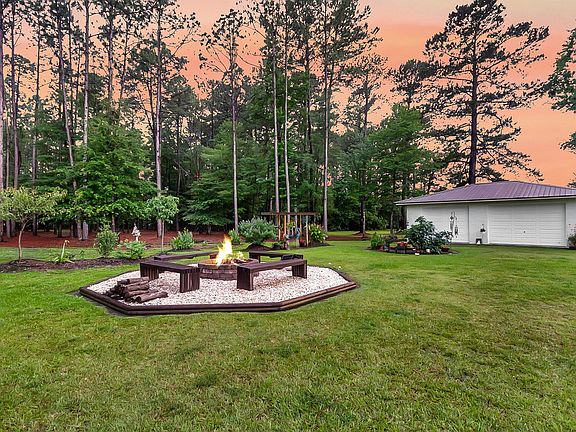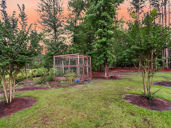 Located on a sprawling 2.5+ acre lot in Summerville, this stunning ranch-style home built in 2019 offers a perfect blend of luxury and functionality. The landscaped exterior and expansive yard set the tone for the impressive features found throughout the property, including a three-car attached garage and an additional two-car detached garage. A long, tree-lined gravel driveway leads you to the home, where you'll be welcomed by attractive flooring, tall ceilings, and an open, sunlit layout.To the right of the entry, the dining area flows seamlessly into a remarkable kitchen equipped with gleaming countertops, abundant soft-close cabinetry, stainless steel appliances, and an oversized island ideal for meal prep or entertaining.Beyond the kitchen, the casual dining space and family room open to the expansive rear patio and backyard. Accordion-style sliding doors in the family room create an effortless indoor-outdoor living experience, perfect for enjoying the Lowcountry lifestyle. Just off the kitchen, a laundry room and powder room add convenience. The primary bedroom serves as a private retreat with direct access to the patio and backyard, a generous walk-in closet, and a luxurious en suite bathroom featuring dual floating vanities and a spa-like step-in shower. Two additional bedrooms share a full bathroom with a beautifully tiled shower. Outside, the massive covered back porch provides an ideal space for relaxing or entertaining while taking in views of the scenic backyard. A built-in fire pit area offers a cozy spot for enjoying the outdoors year-round. The detached two-car garage provides flexible space for extra vehicles, hobbies, or storage. This home is built with concrete block and stucco construction and features interior metal studs. Located just five miles from I-26, six and a half miles from Historic Downtown Summerville, and ten miles from Nexton Square, this property offers the peace of country living with easy access to local conveniences. Come experience the charm and comfort of this exceptional home today.