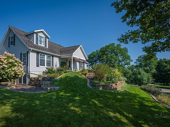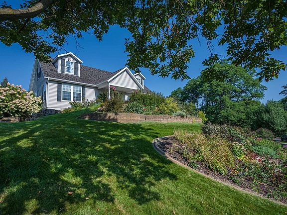 Immaculately kept Cape Cod sited on .25-acre lot in Indian Ridge Subdivision offering spacious layout, elevated treed views, stunning landscaping and lots of upgrades. Limestone steps lead to warm and inviting covered front porch that opens to main level that features hardwood flooring in all the common areas and bedrooms, airy living room that feeds to sunny dining area with direct access to tiered rear deck, modern kitchen with custom cabinetry, stainless appliances, double oven, center island with integrated cooktop, solid surface counters and eat-at breakfast bar, spacious master bedroom, well-appointed full bath with granite topped vanity, comfortable guest bedroom, and laundry room with tile flooring and plenty of storage cabinetry. Dramatic staircase leads to upper level that houses two guest bedrooms (both with alcoves), a loft hall area, and beautifully finished full bath. Lower level offers generous family room, additional full bath with solid surface counter and gorgeous tile floors, and nicely sized storage room. Heated tile in all bathrooms and throughout the lower-level family room for added warmth and comfort. Stunning landscaping with several beds featuring a multitude of beautiful plantings that add color and vibrancy highlight the exterior and compliment the well-manicured yard. Expansive composite rear deck has plenty of room to enjoy the outdoors and entertain company with second tier housing a hot tub. Two car under garage offers ample space for vehicles as well as added storage or work bench, and asphalt driveway allows for additional parking outside. Sought after location allows for in-town convenience combined with a rural feel and is just minutes from Galena Schools and Downtown Galena. Covenants and restrictions apply.