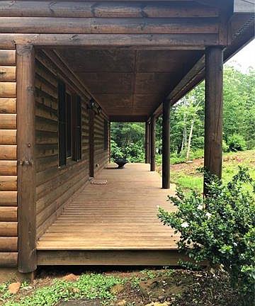 Private Log Home with a bright and airy open floor plan in Riverbend at Lake Lure. This 2 bedroom, 2 bath home features pine flooring, ceramic tile in the bathrooms, wood burning floor to ceiling stone fireplace and enjoy your morning coffee or afternoon tea on your covered front porch. You will enjoy privacy in the gated Riverbend at Lake Lure community that offers private lakes for swimming, fishing, boating and much more. Don't miss this affordable year round home or a vacation getaway!