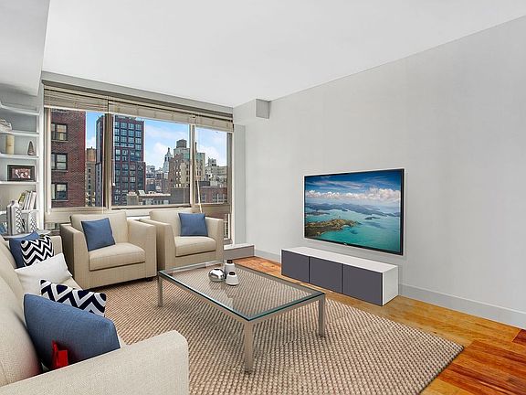 A gracious foyer leads to the bright and airy living space of this beautifully designed, contemporary one-bedroom. The apartment features a spacious kitchen, a large living room with south facing floor-to-ceiling windows which provide plenty of sunlight to the open layout. The large bedroom includes a walk-in closet and large en-suite bath. Additional features include a dishwasher, washer/dryer and ample closet space.
