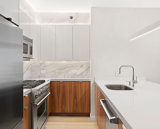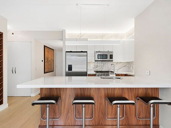 Seller is offering $24,000 incentive to buyer at closing!!! Meticulously designed for elegant living and entertaining, this sunny two-bedroom, two-bathroom home boasts gorgeous garden views and chic interiors in an amenity-rich Kips Bay condop. The spacious and bright showplace invites you inside with oversized south-facing windows, high ceilings and stunning wide-plank, white European, hardwood floors. The gracious foyer opens to an expansive living room overlooking lush gardens at the quiet rear of the building. Chefs will adore the spectacular open kitchen where custom wood and lacquer cabinetry boasts marble countertops and backsplashes and modern integrated lighting. Upscale stainless-steel appliances include a Fisher & Paykel refrigerator and a gas range, dishwasher, and microwave all by Viking. Enjoy casual dining at the wide breakfast bar or reach for your favorite vintage in the architectural built-in “wine wall”. Flanked by a convenient closet, the adjacent dining room easily accommodates work from home needs by day and lavish dinner parties by night. Enjoy serene garden views in the primary bedroom featuring a custom walk-in closet and an en suite bathroom, featuring a glassed-in tub/shower, a wide illuminated medicine cabinet and roomy vanity by Duravit, surrounded by large-format tile and contemporary Hansgrohe fixtures. The desirable split layout places the secondary bedroom on the opposite side of the living room, within easy reach of the full guest bathroom, again, outfitted with Duravit and Hansgrohe finishes. Additional closet space, central HVAC and an in-unit Bosch washer and dryer complete this outstanding Kips Bay residence. Built in 2005, 242 East 25th Street is a contemporary, pet-friendly condop building where residents enjoy part-time doorman service, live-in superintendent, video intercom, a fitness center, storage, a bike room, laundry on every floor and a glorious rooftop terrace with panoramic views. This fantastic Kips Bay home enjoys immediate proximity to NoMad, the Flatiron District, Chelsea, Midtown and Gramercy. The Kips Bay AMC theater, Trader Joe’s and Fairway are nearby, and the wonderful outdoor space of Madison Square, Union Square and Stuyvesant Square parks is just minutes away. Transportation is excellent with 6, N/R/W and L trains, excellent bus service and CitiBikes all within easy reach.