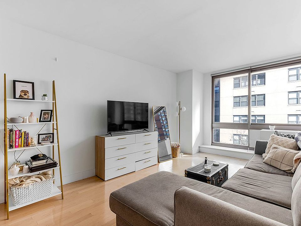 The building offers residents a part-time doorman, gym, roof deck and private storage and bike storage available for rent.
