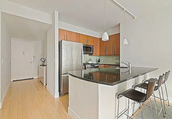 **Available July 31st** Lovely Junior one bedroom in a prime Gramercy/Kips Bay location! Step into this sunny high 9th floor unit and enjoy Empire State Building views from the living room and bedroom. Generous living space allows for an oversized couch, coffee table and more. Unit features two large California Closets, one of them being a walk-in, and an open layout kitchen with stainless steel appliances, granite countertops, and breakfast bar. Easily entertain people in the living room with a seperate private bedroom area with sliding opaque glass partition or leave open for a flowing concept layout. The alcove area currently has sliding doors making it easy to go with either open or closed options. In addition, the unit features a full-size LG washer/dryer! 242 E 25th Street features some fantastic amenities including a part-time doorman, 360 degrees views from the roof deck, state of art gym on the first floor, as well as available storage, laundry room, and bike racks. This is a cond-op that manages like a condo Pet policy: one pet per apartment, breed restrictions apply. 5 minutes away from the 6 and N,R train lines as well as M23 cross town bus and more. This vibrant neighborhood is filled with great restaurants, shops, and Madison Square Park! *Please reach out for a private showing, including who the apartment is for, pets or no, as well as move date*
