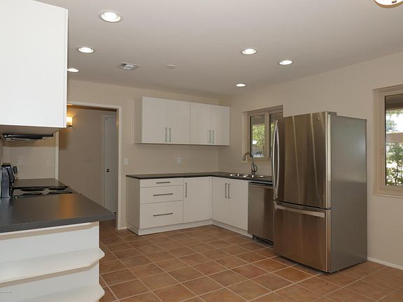 Newly remodeled active adult (55+) home for sale. Covered front patio leads to formal entry. Kitchen with new cabinets, solid surface countertops, & stainless appliances has been fully remodeled for an updated sleek look. Continue through the dining area and living room to find a fully enclosed AZ room overlooking a wonderfully shaded brick patio & backyard with mature landscaping. How wonderful the desert lifestyle is when you can enjoy the warmth of the great outdoors while avoiding the heat of the sun. Back inside, you'll find a den off the living room, hall bath with tile tub surround & updated vanity, a guest room and master suite including walk-in closet, updated vanity, & tiled step-in shower. Flooring tile throughout. Laundry room off carport includes a washtub for easy