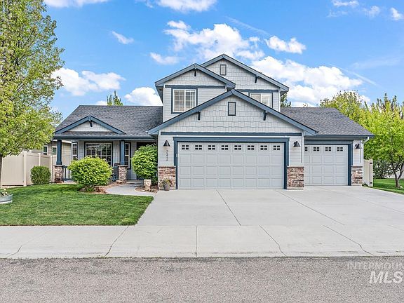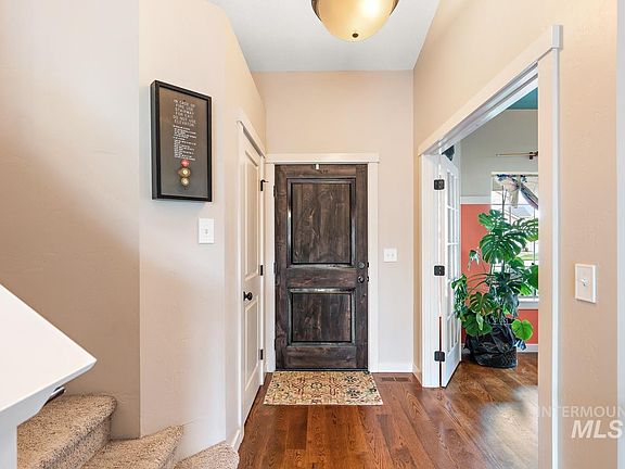 Welcome to this extraordinary entertainer's dream home in sought-after South Meridian! The freshly painted exterior and great curb appeal make this home a true standout. Inside, the updated kitchen features stunning quartz counters and a stylish tile backsplash. Gorgeous hardwood floors downstairs! The primary bedroom and bathroom have custom wall paneling and unique countertops sourced from the BSU Women's locker room! Beautiful mountain views from the comfort of your own bedroom is simply breathtaking. A spacious garage boasts an extra deep 3rd bay with a custom bar and fridge, perfect for hosting gatherings. Unwind in the private hot tub area,right outside your bar! Water heater and softener systems recently updated in 2020. Office/Bonus room on the ground level is light and bright! The common area on one side provides privacy, and the lovely backyard is the perfect setting for relaxation or entertainment. Close to fantastic restaurants, shopping, and easy freeway access. This home is a must see!