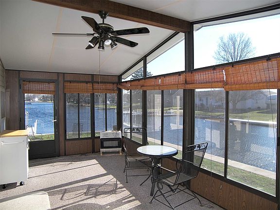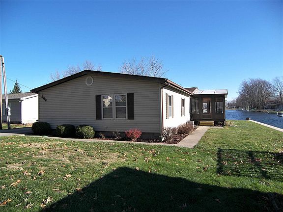 Big Chapman Lake corner waterfront lot in Osborn's Landing. Immediate possession available with this vinyl sided 3 bedroom 2 bath ranch offering 1680 sq ft of living space plus a 10x20 glassed sunroom with great views of water and woods. Waterside vaulted living room with gas log fireplace, decent sized kitchen (with breakfast bar, pantry closet and all appliances), formal dining room with built-ins, large master bedroom with remodeled private bath (dual sinks, garden tub, separate shower, closet). Amenities include: new roof shingles (2020), newer high efficiency GFA furnace and central AC (6 years old), insulated windows, Kinetico water softener, laundry area with washer & dryer, 4 inch well, modern septic system. Ample off street parking with the asphalt driveway that leads to the boat ramp at the water's edge. Newer 150 foot (2 foot wide) concrete seawall with boat docking piers just steps away from the sunroom and deck. Storage shed (with fish cleaning station), NIPSCO natural gas, REMC electric. Property could be sold furnished (if furniture and furnishings desired by a buyer). Popular west side location just minutes away from shopping, grocery stores and restaurants. Big Chapman Lake an all sports spring fed lake, one of the cleanest in the state, and is connected via water (2 way channel) to Little Chapman Lake (a 10 mph fishing and swimming lake). Spectacular 4th of July fireworks on Big Chapman Lake thru the Conservation Association. Limited properties come up for sale on the Chapman Lakes, call and schedule your private tour today!