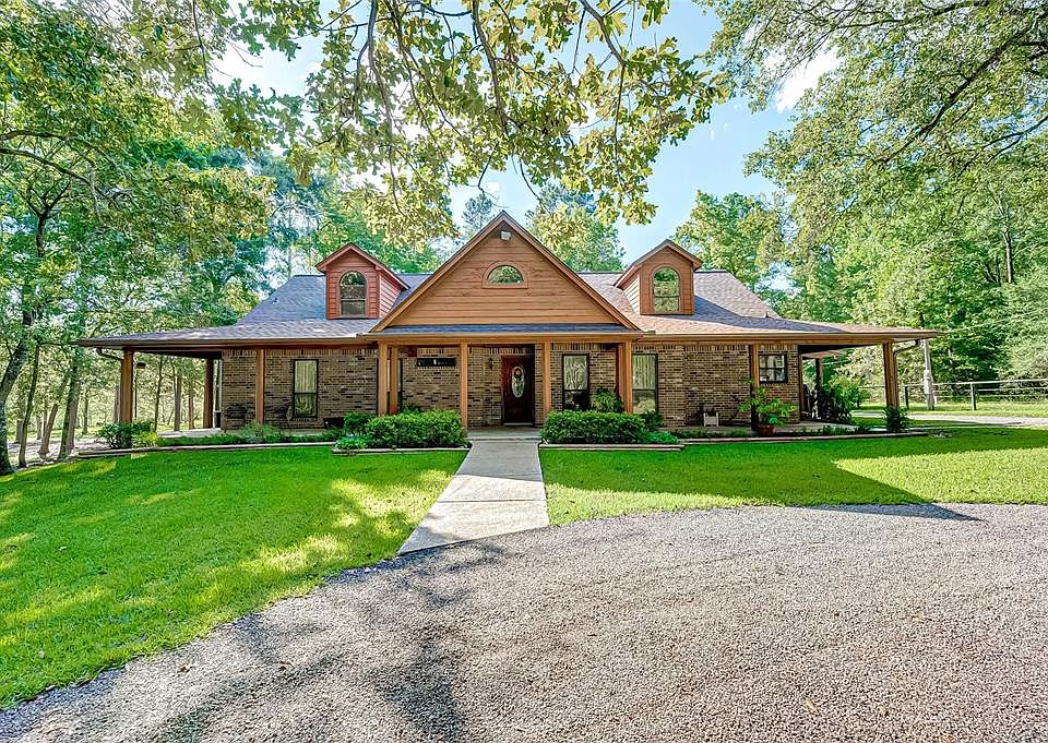 Relax in the countryside in this custom-built ranch-style home on 9.38 acres of manicured property adorned by beautiful trees and landscaped yard. Huge wrap around porch is perfect for enjoying beautiful sunsets. Large windows provide ample amount of natural lighting, while the fireplace in the Family Room is a great place for conversation area or warm/cozy evenings in the winter months. This floor plan offers 2 bedrooms downstairs and additional 2 bedrooms upstairs. One bedroom is HUGE and could be a flexible space, such as game room or additional living space. An abundance of storage throughout every part of this home. Stocked pond with covered pier, 2 car detached carport with storage/workshop, pole barn, greenhouse, and gated entrance and pipe fencing along front and side of property. 220 outlet at the carport for RV. You will love this home and how meticulously it has been cared for by the owners.