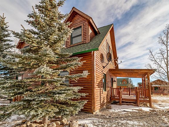 **accepting backup offers and showings** Charming log cabin backing up to BLM land recently remodeled and move in ready. This property allows full time residents, long term rentals and short term rentals (see rental rate projections below). Take a hike just out your back door & enjoy expansive views. Relax on the large private deck backing to open space after your day’s adventures or enjoy your morning coffee soaking up the Colorado sunshine and mountain views. A bed, bath & laundry on the main level make living easy; two additional bedrooms and a bathroom upstairs. Knotty wood doors and trim throughout, mountain views plus a stone fireplace give this log cabin a true Colorado vibe. Walk to the large club house & soak in one of 2 hot tubs. Natural gas heat and stone fireplace make for cozy winter nights. New paint and new flooring throughout, comes with all appliances, washer and dryer. Long term rent estimate $2500 per month, short term rental monthly gross figures from AirDNA for 3 bedrooms state $3,416 monthly average estimate. Many options for this unique property.