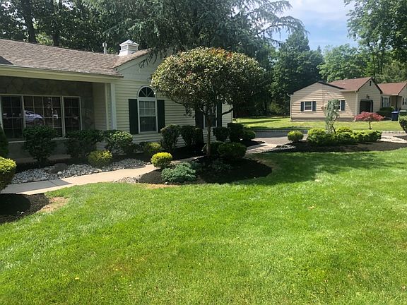 Wonderful opportunity to own this one of a kind center hall center hall colonial home on 3/4 of an acre in the heart of Eatontown! Landscaping has just been updated, right in time for summer! Featuring underground sprinklers, fresh mulch and a beautiful array of greenery. Spacious foyer with 2 hall closets. Make your way to the formal living room and relax beside the cozy brick fireplace with hardwood floors just beneath the carpeting. Right off the living room is a great dining room that leads right into the large eat-in kitchen with a bay window that overlooks the park like back yard. Recessed lighting, a huge island with sink and custom cabinet doors are some of the few tasteful touches that embellish the space. To the right of the foyer is a sunken family room being used as an offic