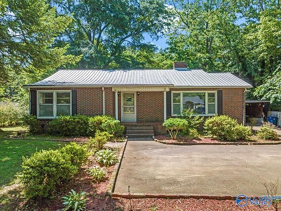 Own a piece of Arab's history! Approximate 1888 sq. ft. brick home in a great location was built in 1936 by a prominent local family and features a foyer opening to the huge living room with hardwood floors and fireplace, spacious kitchen with pantry and new dishwasher. Adjoining the kitchen is an open family room with a fireplace. Two large bedrooms, cedar-lined closets, two baths. Sunroom opens to newer back deck and overlooks the peaceful backyard. Brick house has a metal roof, gutters, concrete drive, covered carport and is on a beautiful .75 acre treed lot. Some TLC could restore this treasure to its original beauty. Sold as is.