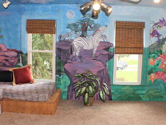 2 bedroom(sunroom off of 1 bedroom), 1 bath, eat in kitchen (with built in table and bench provided) with 1 car garage, upper level of house for rent. Large fenced in yard and separate building for storage. No yard or snow maintenance required. Laundry facilities in basement level to be shared with lower level tenant. Available now. $800/month plus $800 security deposit. Utilities not included. Owner willing to paint over jungle themed road if tenant desires. Tenant to pay for $25 non-refundable background and credit check at time of application. No pets allowed, no exceptions. Message today for a private showing. Presented by Key Realty Tenant pays all utilities