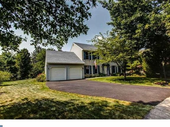 You will love this home in award winning Central Bucks School District! Four Bedrooms; 2.5 baths, finished basement; hardwood floors, granite; nestled in a wide cul de sac in the serene and private neighborhood of Hollydale. This community epitomizes pride of ownership. This tastefully decorated home offers great natural light throughout; the bay window and unique double wide sliding glass (beveled glass panes!) back doors provide a striking view of the beautiful back yard. Inside you'll find a beautiful dining room that boasts hardwood floors and seating for 10. The large, private office/den, with beautiful wood and glass French doors, is a converted living room; this room offers multiple possibilities. The main level also features an open floor plan with the large, eat in kitchen (beautiful hardwood floors) extending into the family room which includes a fireplace and built-in cabinets - both rooms are bathed in natural light due to the sliding glass doors and the bay window mentioned earlier. The large kitchen features newly installed granite and stainless steel appliances. A large mudroom and oversized garage complete the first level. The second floor boasts new carpets throughout all four tastefully decorated bedrooms. The main bedroom features a huge walk-in closet that will not disappoint. It also features a wonderful en suite bathroom with a beautiful glass shower enclosure, double sinks, and a large Jacuzzi/soaking tub. You'll also love the large basement that features a newly carpeted, tastefully done finished area designed for entertaining, relaxing and/or working out. There is also a large, unfinished area that will meet all of your storage needs. Outside this home you'll find classic colors along with simple, tasteful, well-scaled landscaping. Out back, the large deck includes two entry points and has been freshly painted; the backyard is perfect for enjoying the outdoors. The seller is a licensed Pennsylvania real estate agent.