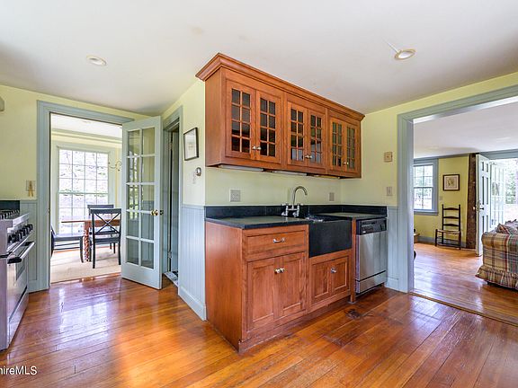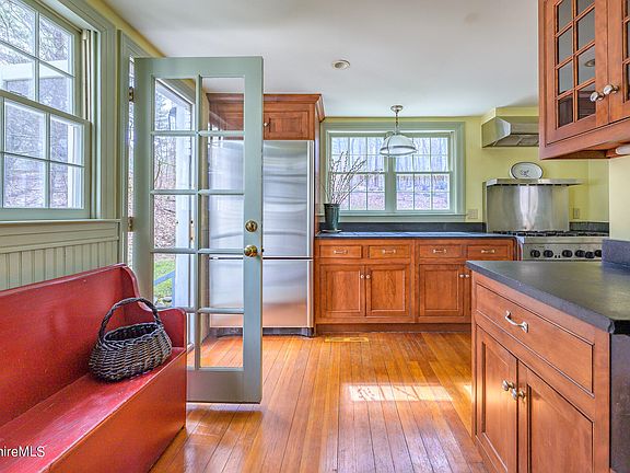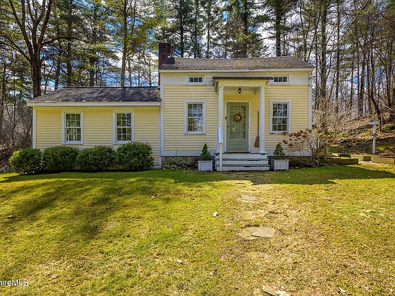 Nestled on a hill in a grove of tall pines on a quiet country road sits this charming eyebrow colonial cottage. This historic home home was once the original area school house. From the moment you walk through the front door, you'll instantly feel right at home. Sip your morning coffee in the sun soaked kitchen or curl up with your favorite book in front of the inviting 1920's fireplace built with stones sourced from the land.This home also features a raised bed cutting garden with mature plantings. Originally built in 1890, this home was last renovated in 2002, but maintains its original character. While it is now in need of some TLC, it features a 2022 newly installed 3 bedroom septic system, and new water tank. Close to Hudson and all Berkshire amenities, this welcoming home is waiting you to make it your own.