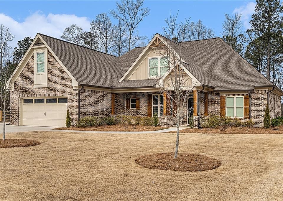 Immerse yourself in the charm of this meticulously crafted like-new construction! The floorplan unfolds with a main-level master bedroom and two additional bedrooms sharing a Jack and Jill bathroom. The open-concept living area features cathedral beamed ceilings, and the kitchen is a culinary haven with granite countertops, a sizable island, stylish tile backsplash, ample cabinet space, and a pantry. Gorgeous hardwood floors grace the main level. Upstairs, discover a versatile bonus room, a fourth bedroom, and an open loft area that can be converted to a sixth bedroom or remain a multifunctional space. The covered back patio offers a private retreat overlooking the large, level lot. The versatility and quality craftsmanship shine throughout this home. Welcome Home!