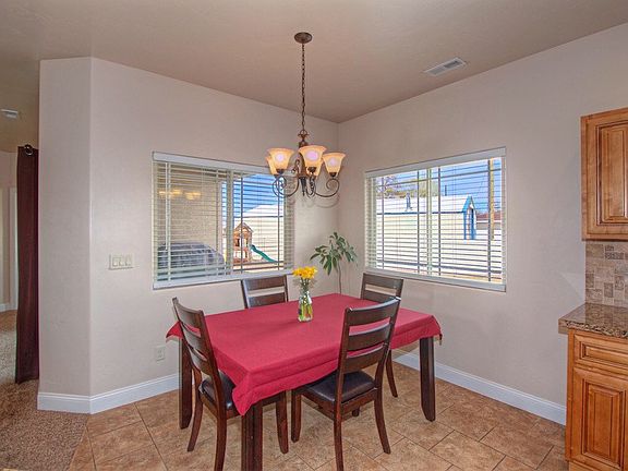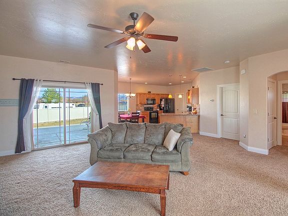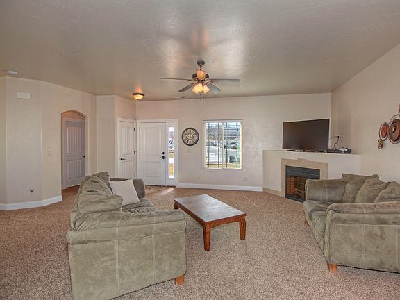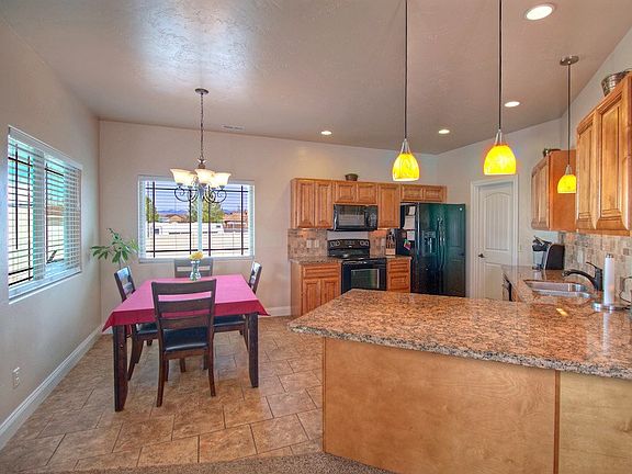 This custom built home is full of upgrades, feels bright and spacious immediately walking through the front door. The split floor plan leads into a beautiful open living to kitchen and dining area, complete with eat-up bar and huge walk-in pantry. The cabinetry is all hickory and the counter tops are beautiful granite. In the open living area, an electric fireplace heats the heart of the home. The Master bedroom faces into the private, north facing backyard. The Master walk-in closet, double vanity, water closet, and low step-in double headed shower provide convenience and practicality. A covered patio, garden area, open space to play and the play set is included.