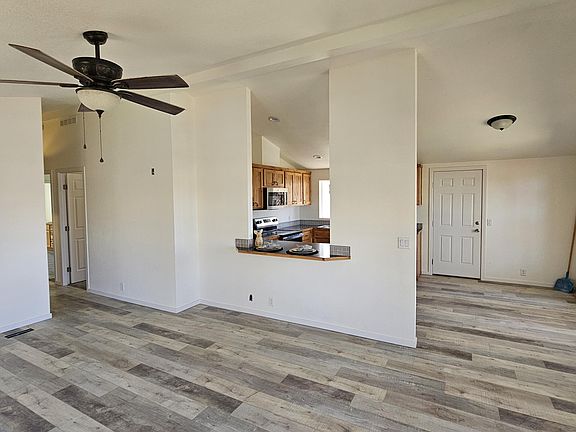 • Breakfast Bar, Ceiling Fan(s), Fiberglass Stall Shower, Laminate Counters, Linen Closet, Open Floorplan, Primary Downstairs, Shower/Tub Combo, Vaulted Ceiling(s), Walk-In Closet(s)