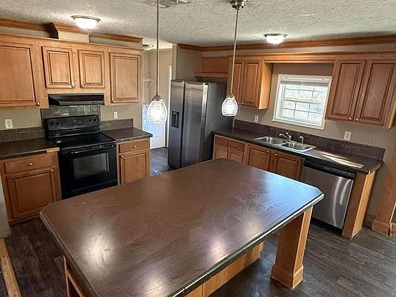 Spacious 4 bedroom 3 bath manufactured home with awesome floor plan with open concept. Kitchen has plenty of cabinet space and an large island that is perfect for entertaining. Two living areas with one featuring a cozy fireplace. Master suite has large bedroom with double vanity, relaxing garden tub, separate shower and huge walk in closets. Oversized laundry room. Double paned windows, crown molding and spacious lot. RV hookup and storage shed are additional features. Big deck on the back of home for relaxing. Call to set up your showing.