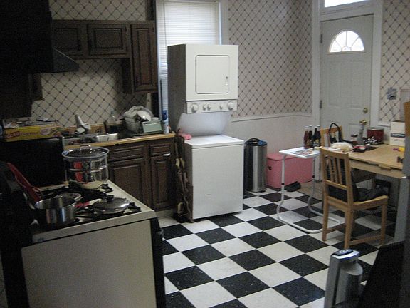 Very residential neighborhood. Walk to cafes, bars, shops and express busway. Entire 1st floor of renovated 2 unit converted Colonial house with large rooms, high ceilings, and large windows hardwood deck, small yard, and off-street parking included in rent. Front and rear entrances. Large front porch and rear deck, A/C, w-w carpeting, new windows, wiring, plumbing and new high-efficiency gas furnace. Laundry in kitchen. No undergrads. Security check. 990+elec, gas. Owner pays garbage, water/sewar.