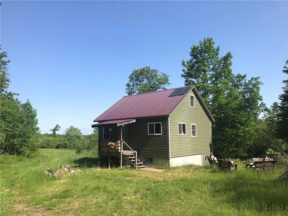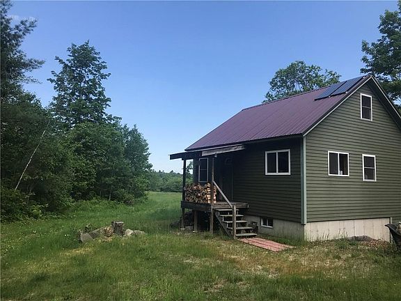 Call it camp! Great cottage off the grid, on a large, surveyed, 73.8 acre lot. Cottage has one bedroom and a sleeping loft, wood flooring, cathedral ceilings in the living room, full basement, generator hook-up, and solar panels with batteries. Land offers a variety of terrain including woods for hunting or hiking, a brook, and open fields that would be great for farming, growing, or animals. Nearby to lakes and snowmobile trails. Only 20 minutes to Route 16. Also see MLS 1357615.