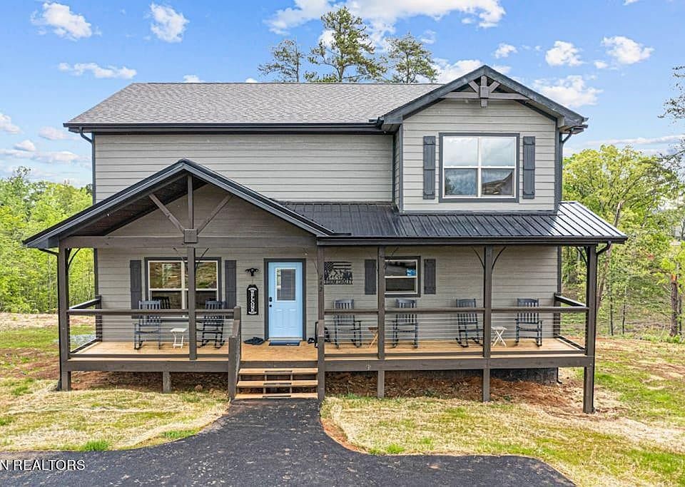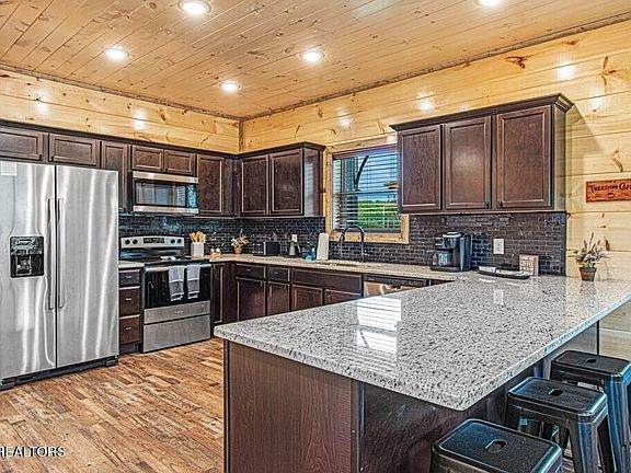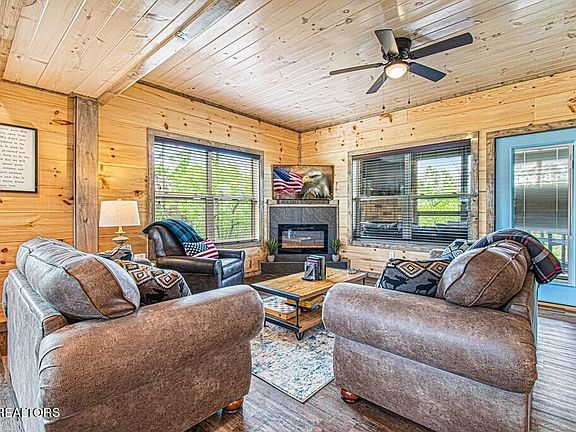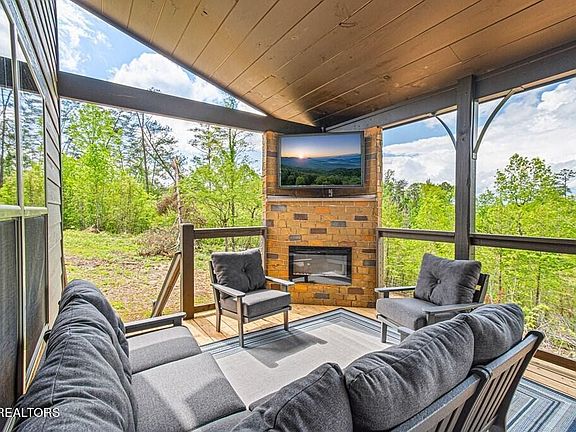 Amazing opportunity to own this newly constructed RENTAL READY cabin, nestled in the outskirts of Pigeon Forge, this 4 bedroom 3 bath home is a dream come true. Completed in 2023, the top floor features a master suite with a king-sized bed and en-suite bathroom, as well as a bunk room with queen over-queen beds and arcade games for extra fun. An additional King Bedroom provides incredible views of the mountains that will take your breath away. The main level offers plenty of space for entertaining family and friends. The kitchen boasts ample cabinet space, granite countertops, and stainless steel appliances - perfect for creating delicious meals! Enjoy gathering around the cozy electric fireplace in the living room or spend quality time together with ample dining space. Additionally, there's also an expansive 4th bedroom and bathroom on the main level. Step outside onto your covered porches front & back side to admire majestic mountain views or relax in your private hot tub after long days spent exploring all that The Great Smoky Mountains have to offer! A comfy outdoor seating area complete with an electric fireplace & Smart TV makes it so easy to enjoy those starry nights surrounded by nature's beauty! Don't miss out on this incredible opportunity!